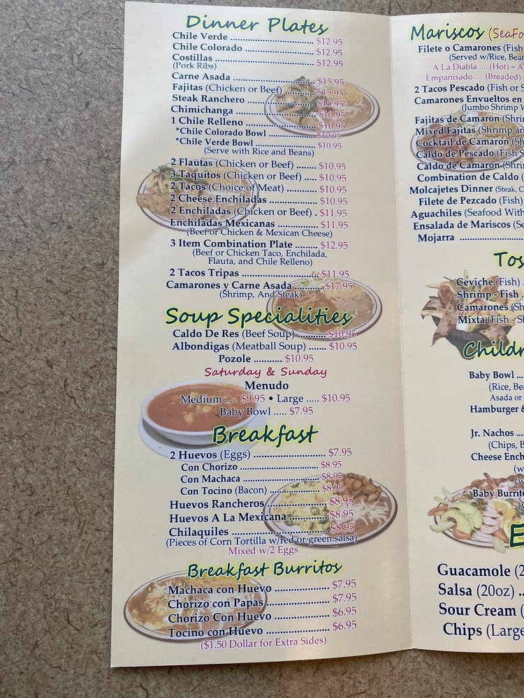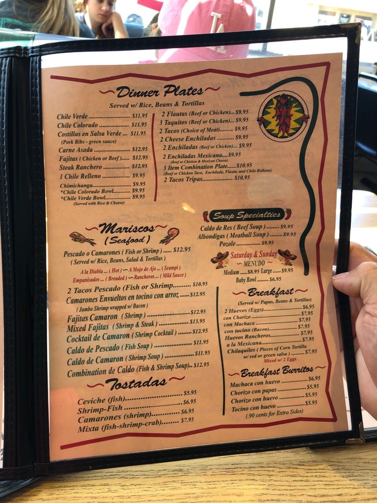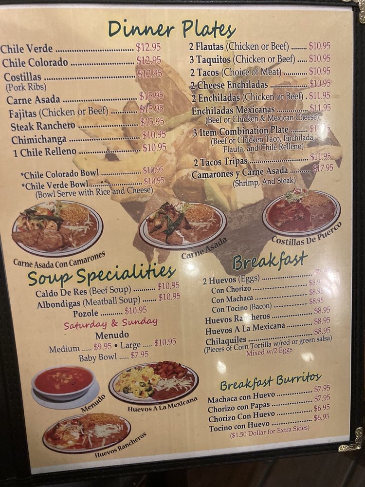 Traditional Mexican soup made with beef tripe in a red chili pepper broth, and hominy. Available only on Saturdays and Sundays.