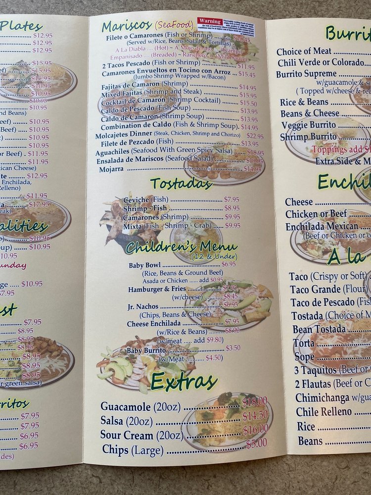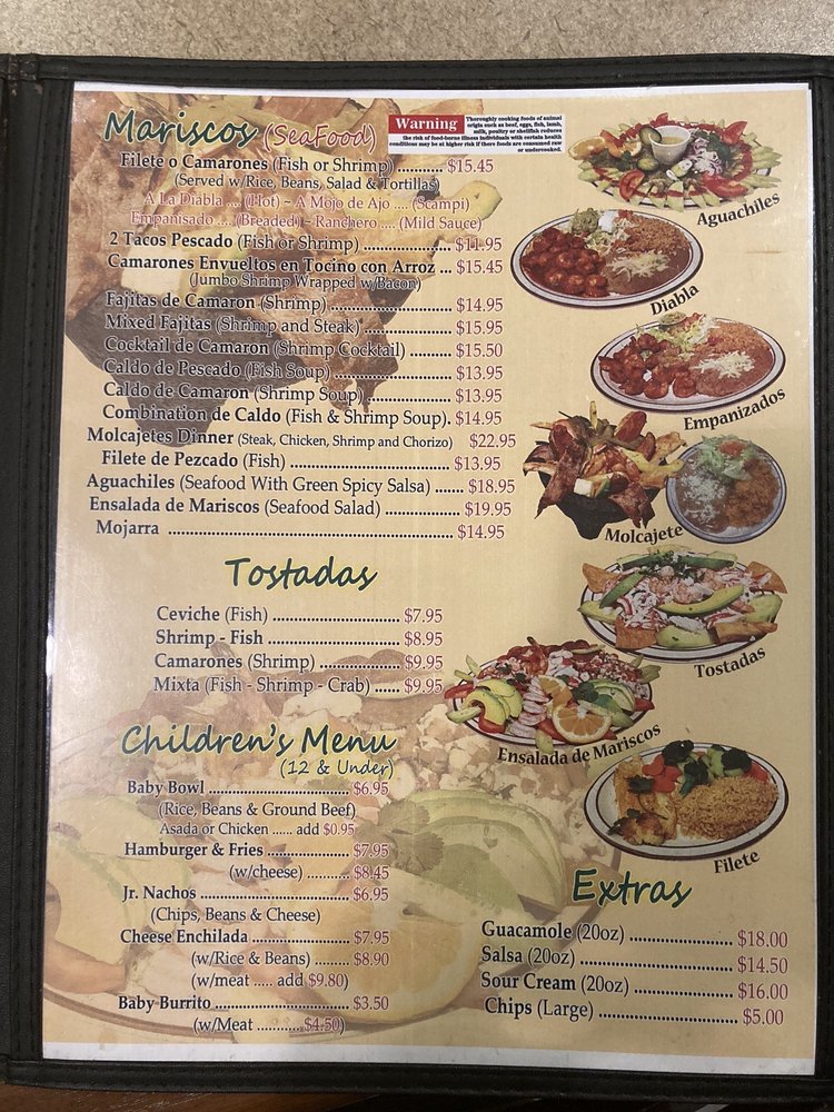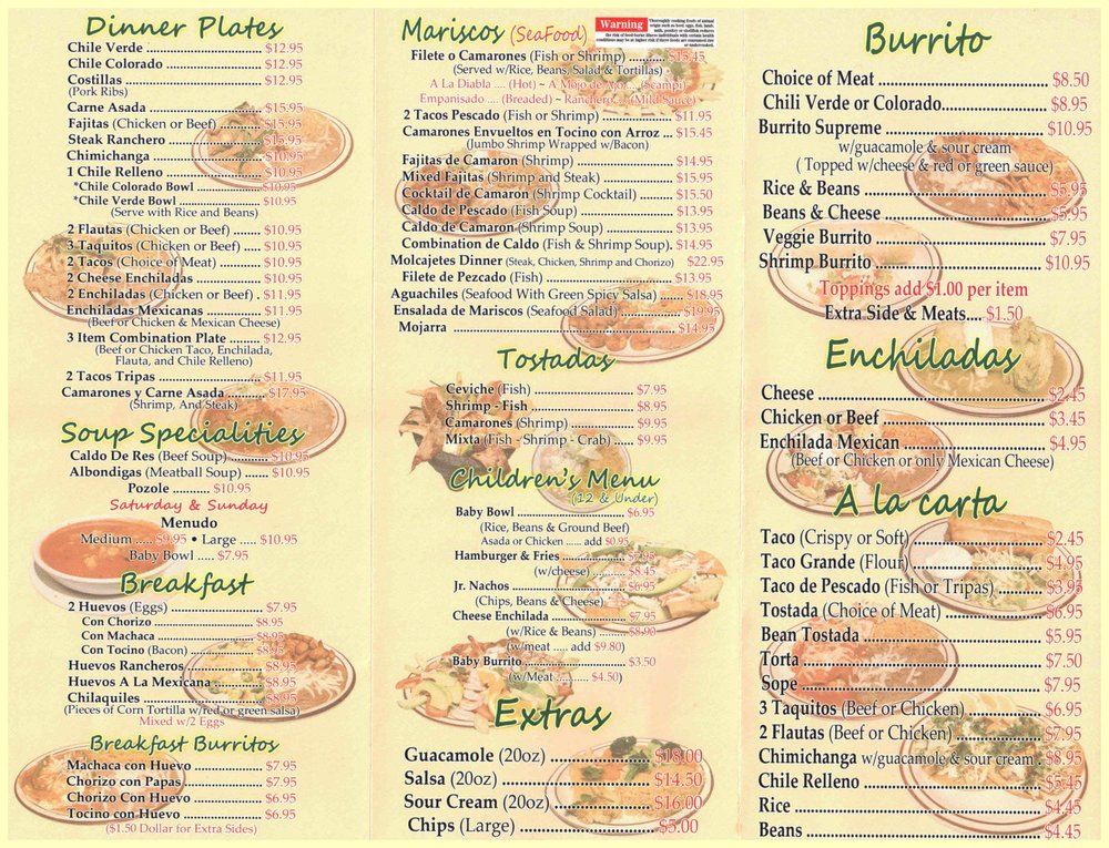 Served with rice, beans, salad & tortillas. A la diabla (hot), a mojo de ajo (scampi), empanisado (breaded), ranchero (mild sauce), a la plancha (grilled)
